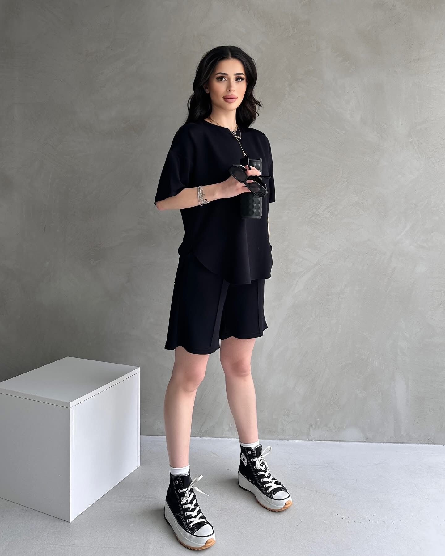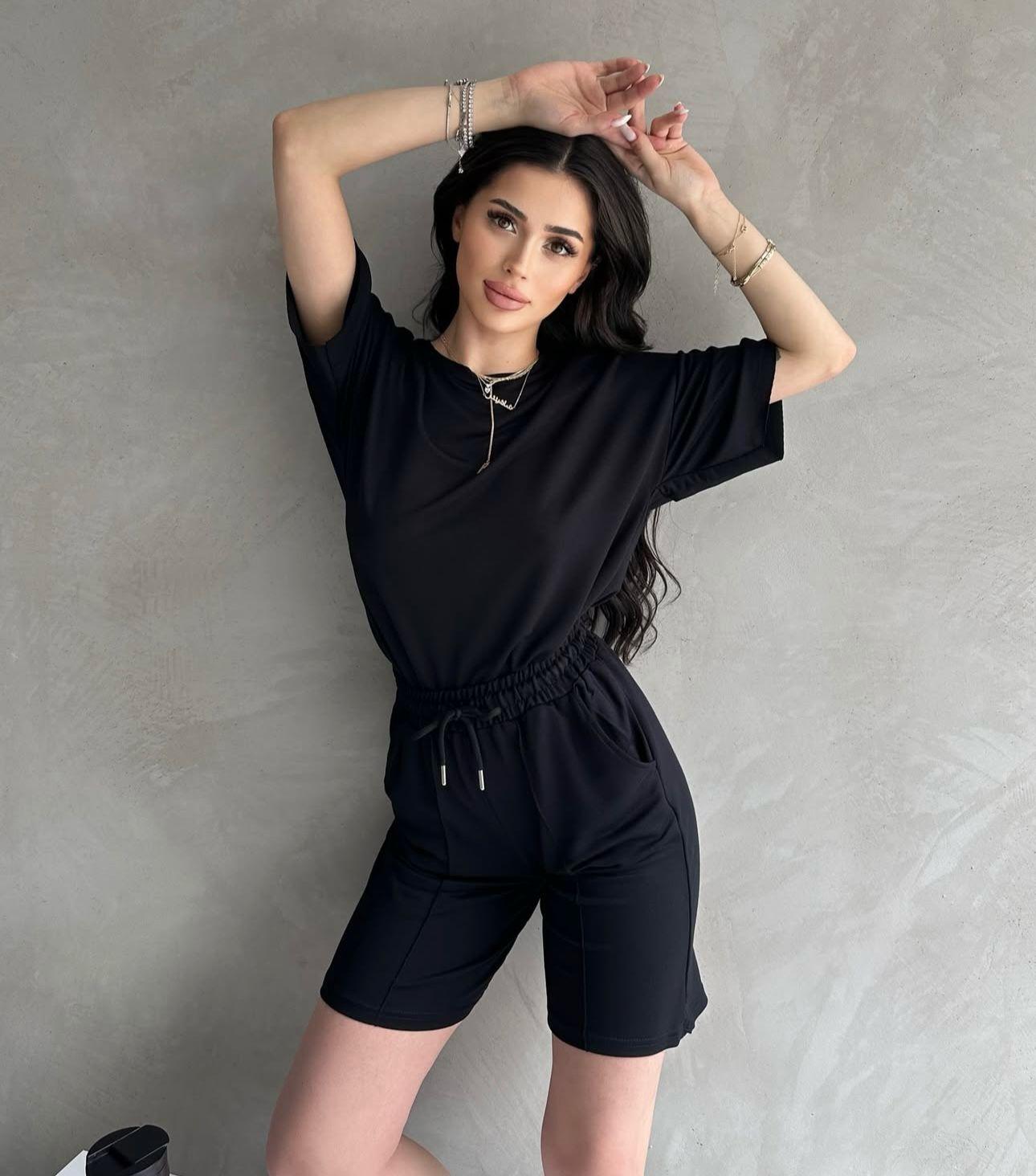 Compleu sport format din pantaloni scurti si tricou, confectionat din bumbac moale si respirabil, ideal pentru confort si libertate de miscare.