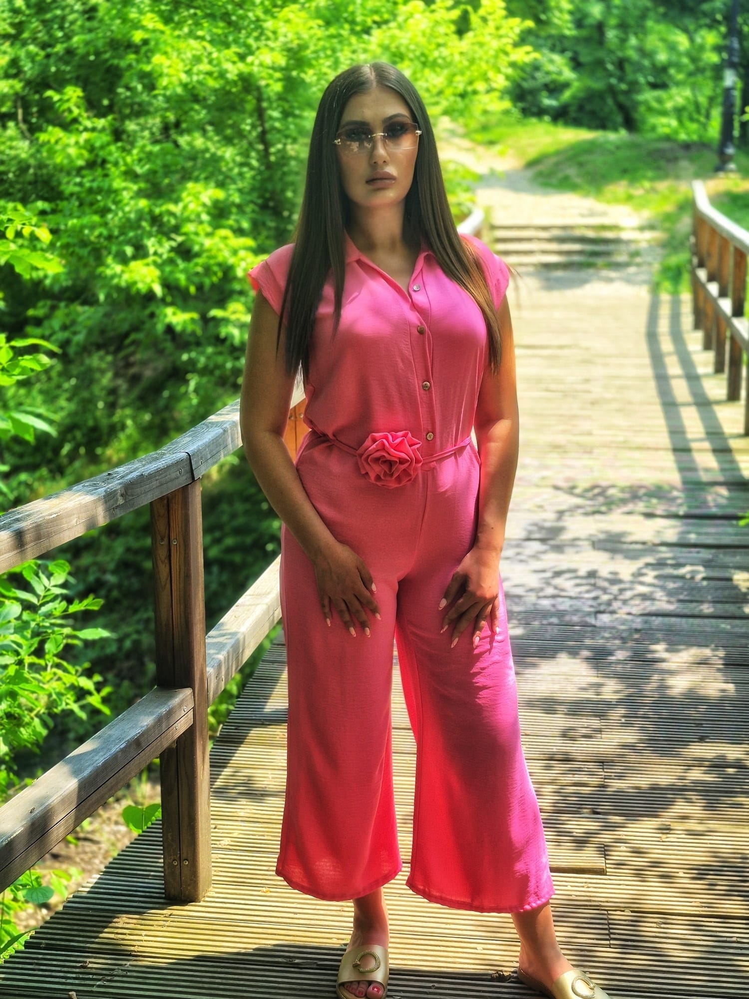 Eleganta si confort intr-o singura piesa. Aceasta salopeta din vascoza este alegerea ideala pentru zilele calde, datorita croiului lejer si materialului fluid. Designul este completat de un cordon in talie cu detaliu tip floare, care subliniaza frumos silueta. Se inchide cu nasturi in fata si poate fi purtata atat casual, cat si la evenimente relaxate.