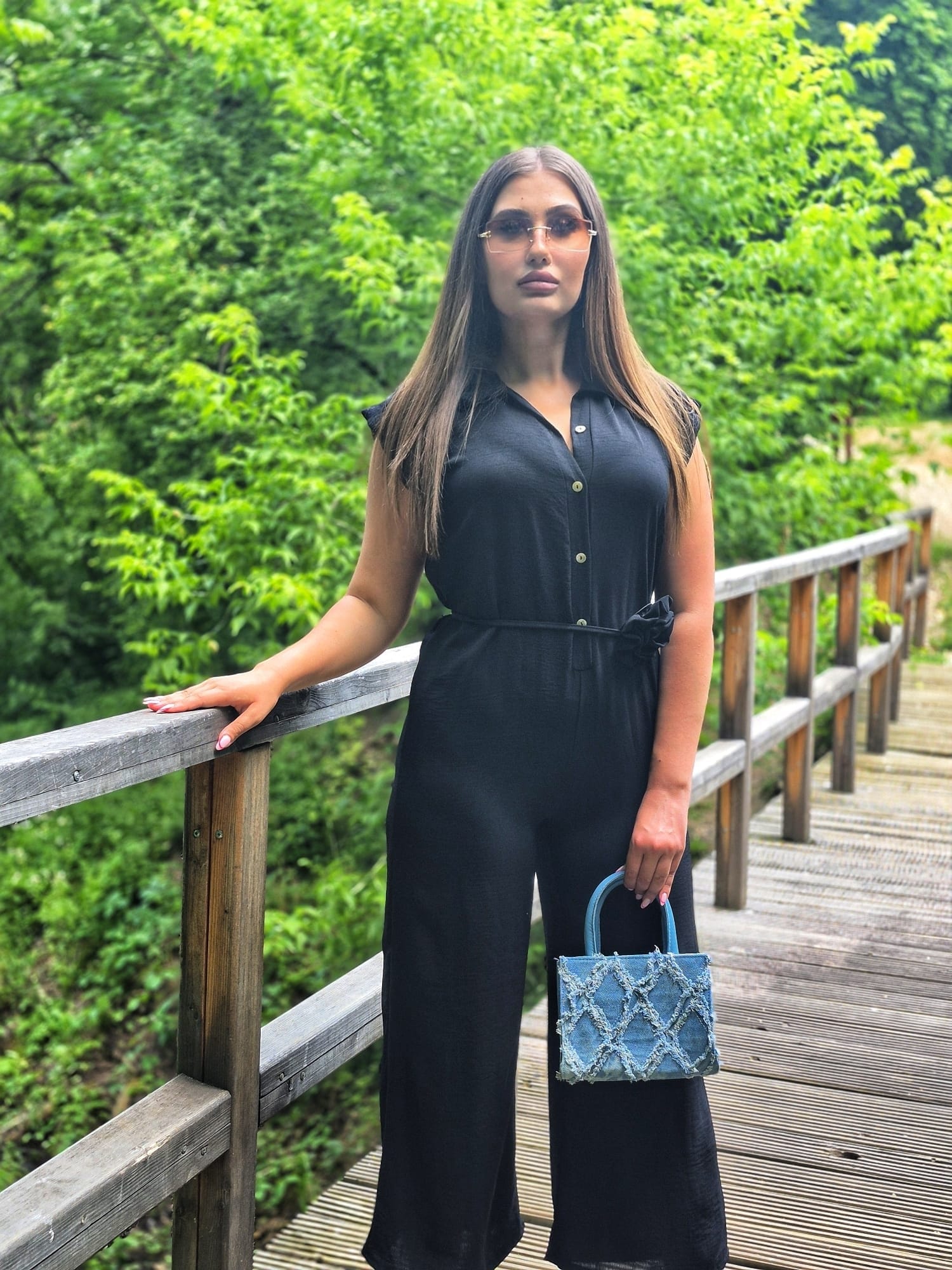 Eleganta si confort intr-o singura piesa. Aceasta salopeta din vascoza este alegerea ideala pentru zilele calde, datorita croiului lejer si materialului fluid. Designul este completat de un cordon in talie cu detaliu tip floare, care subliniaza frumos silueta. Se inchide cu nasturi in fata si poate fi purtata atat casual, cat si la evenimente relaxate.